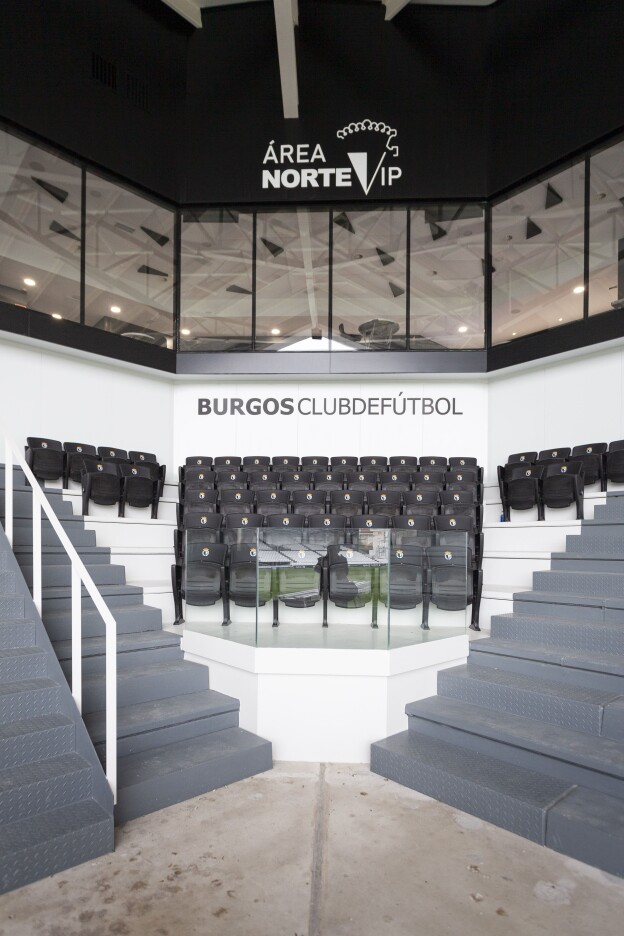 Javier Herrán Construcciones ha construido la dependencia interior, acristalada, desde la que se podrán seguir los partidos de fútbol de una forma cómoda y abrigada, y una segunda exterior, ya en la grada, que se encuentra separada por una barandilla del resto de localidades.